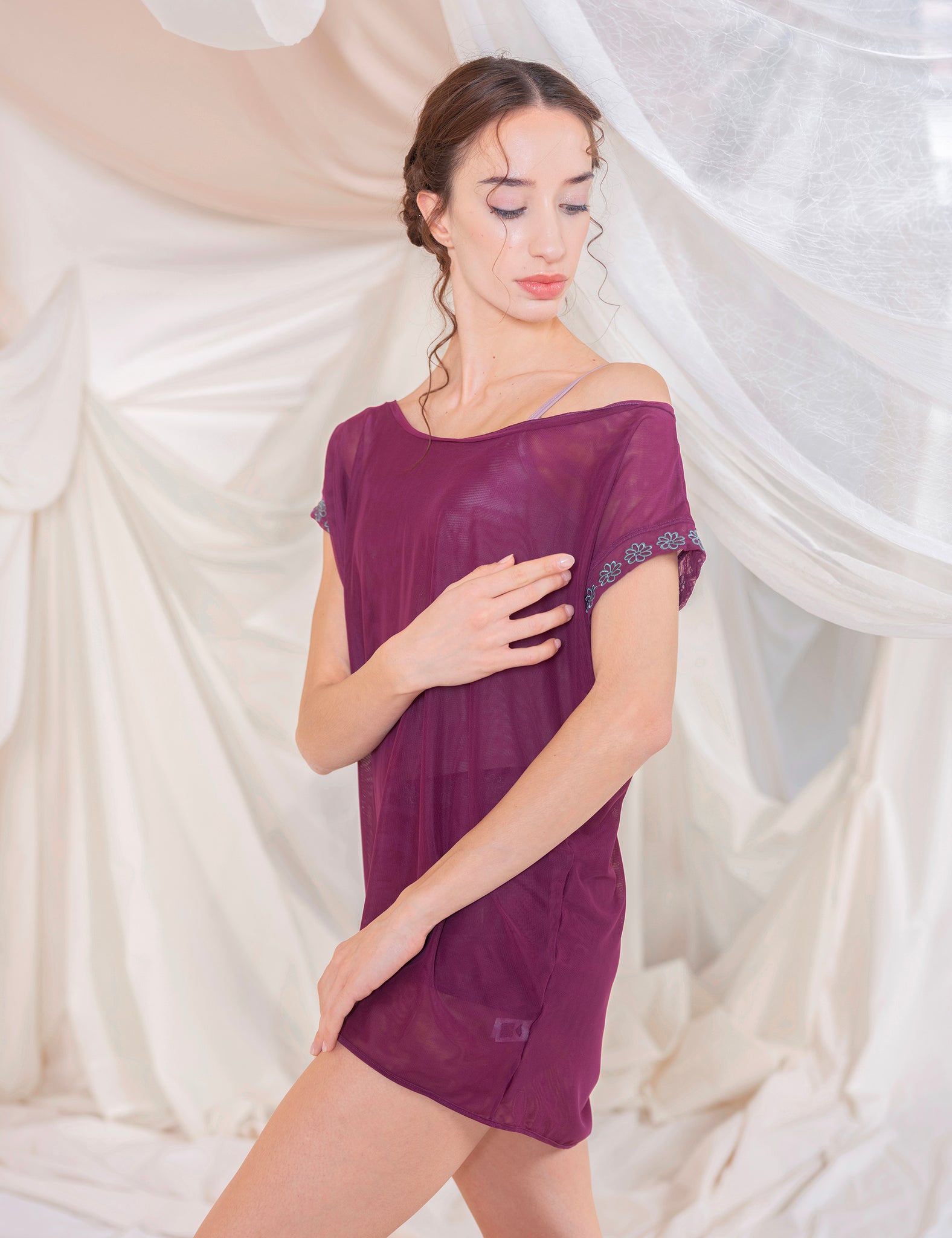 Daisy Blouse is a chic and comfort layering piece. Made in soft tulle is perfect to be worn over your leotard or to be paired with Daisy Skirt or Daisy Shorts. Daisy Blouse features shorts sleeves and wide boat neck line to ensure any kind of movement and embroidered daisies for a perfect DellaLo’ style.